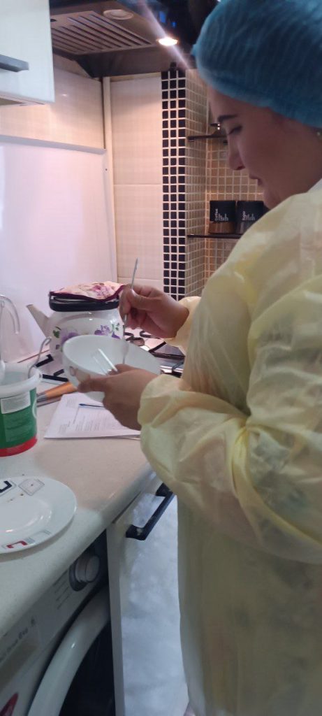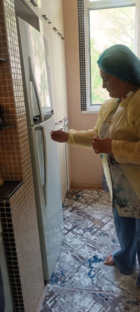 🔸Bakteriologik tekshiruvlarni o‘tkazish uchun oshxona jihozlari va idish-tovoqlardan surtmalar olindi va kasallikni oldini olish bo‘yicha suhbat o‘tkazildi.Shuningdek dezinfeksiya tadbirlari olib borildi va laboratoriya uchun suvdan na’muna olindi.